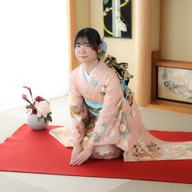 今回は、当店の振袖レンタルプランをご利用いただき、成人式当日のお出かけお支度に先駆けて、前撮りの撮影にお越しいただきました。