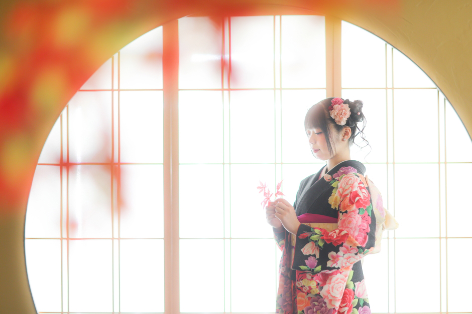 月見窓のシーンでお撮りしたお嬢様の素敵なポートレートです。