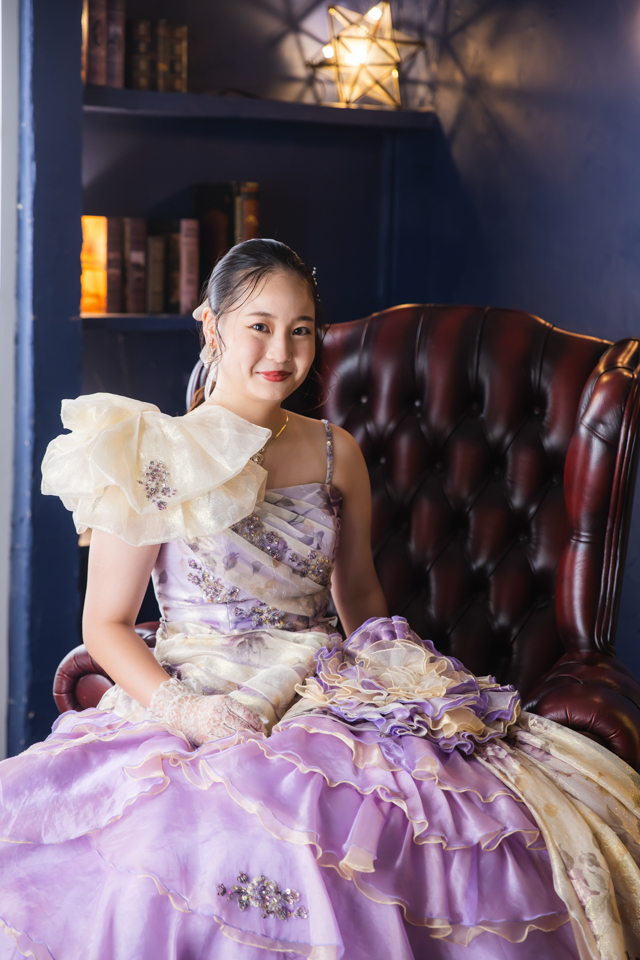 当日は、振袖に加えてドレスでも撮影をさせていただき、可愛らしさと大人っぽさ、それぞれの雰囲気を存分に楽しんでいただきました。