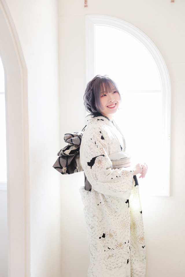 今回は、当店の振袖を使用し「可愛いところが気に入った」とお選びいただいた一着で、お支度と撮影をさせていただきました。華やかで可愛らしい振袖姿がとてもよくお似合いで、撮影中も終始素敵な笑顔があふれていました。