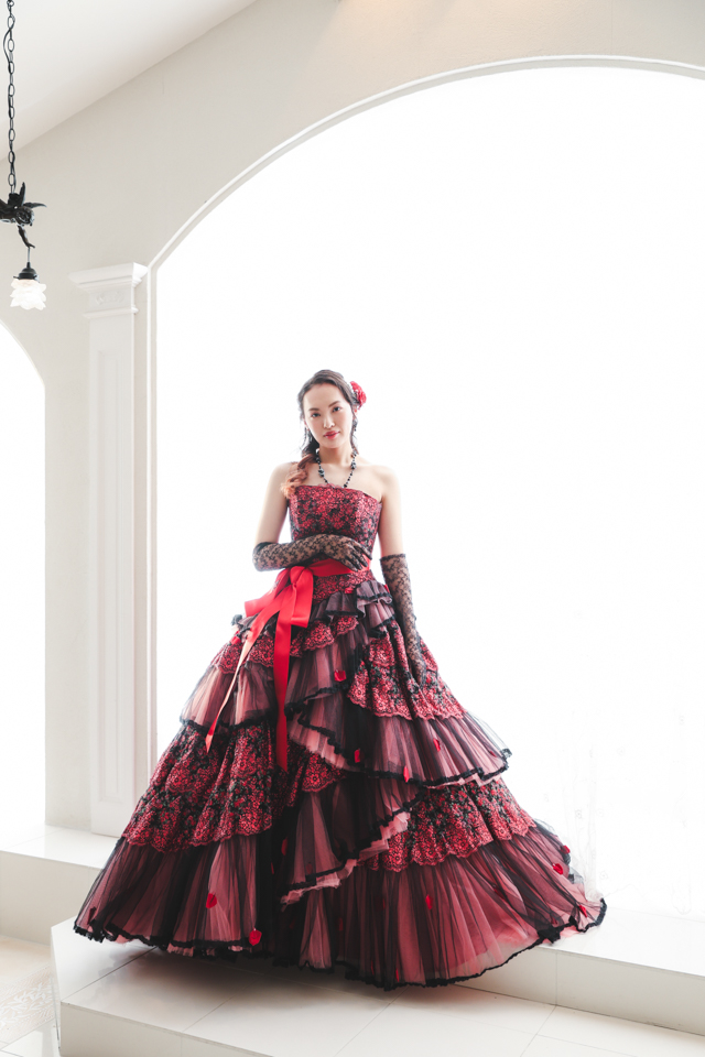 千葉市美浜区のフォトスタジオ「振袖物語館幕張本店」の振袖前撮りのお写真です。振袖の撮影とご一緒にお撮りさせていただいたドレス姿のお嬢様の素敵なポートレートです。