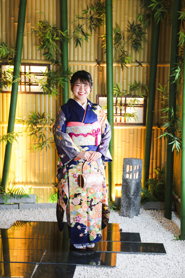 お支度と撮影では、当店の振袖とドレスをお選びいただき、それぞれ「華やかさ」を決め手に、節目にふさわしい華やかな装いをお楽しみいただきました。