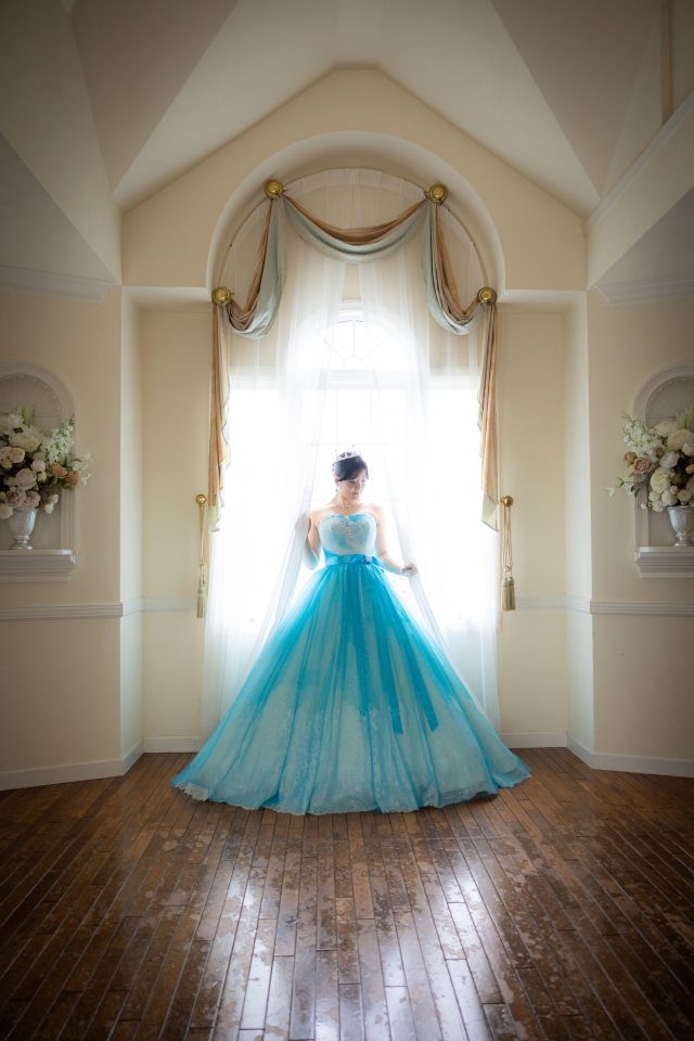 横浜店人気の大広間スタジオで、ドレス姿のお嬢様をお撮りした素敵なポートレートです。