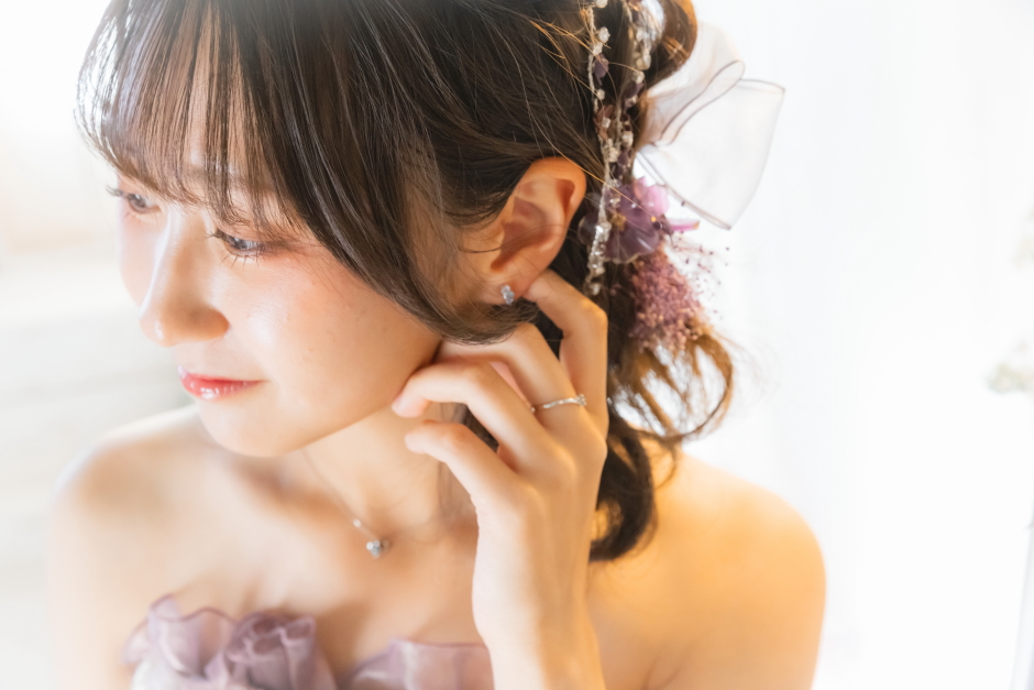 ヘアスタイルはお嬢様からご希望をいただき、ふわっと巻いたスタイルに。