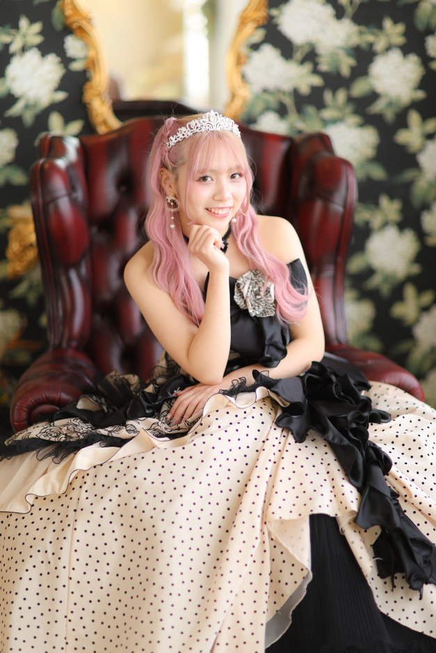 撮影の感想をお伺いすると「スタジオのセットが綺麗で良かったです。中でもドライフラワーに囲まれたベンチのところがお気に入りです」とコメントをいただきました。