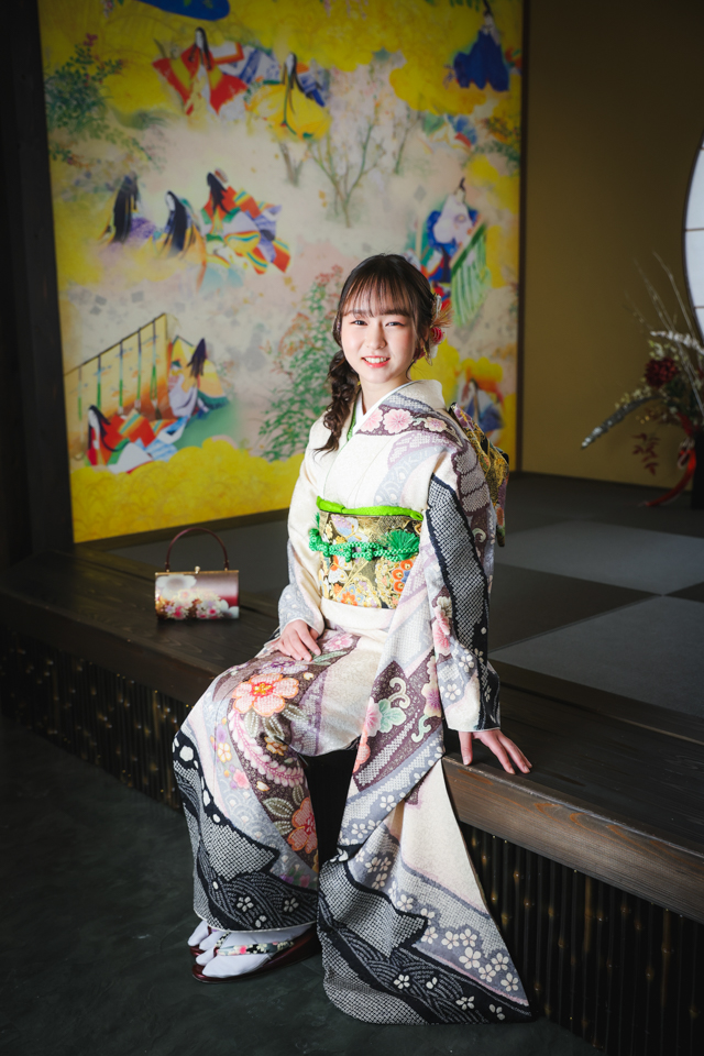 千葉市美浜区のフォトスタジオ「振袖物語館幕張本店」の振袖フォトプランのお写真です。振袖姿でお撮りさせていただいたお嬢様の素敵なポートレートです。
