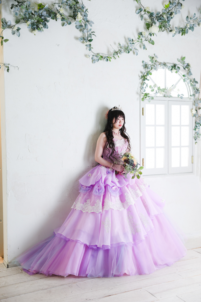 千葉市美浜区のフォトスタジオ「振袖物語館幕張本店」の振袖フォトプランのお写真です。ドレス姿でお撮りさせていただいたお嬢様の素敵なポートレートです。
