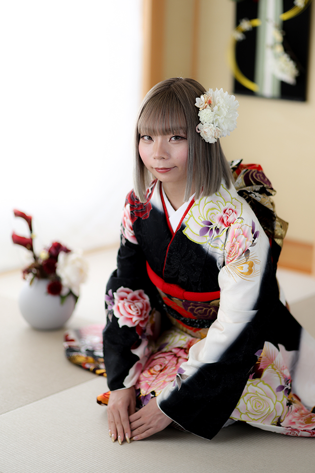 2025/12/20 モダンな振袖がお似合いです 成人振袖 ブログ 市川店 市川市の写真館「振袖物語館 市川店」の成人式振袖前撮り写真です。 2026年の成人式にご出席予定のお嬢様。式典当日の振袖を当店でレンタル予約いただいており、今回はその前撮りで振袖とドレスの2着を撮影させていただきました。 市川店の和室スタジオで正座しているお嬢様。 白地に大きな薔薇が描かれたモダンな振袖がお似合いで、とてもいい雰囲気を醸し出しております。 撮影後のアンケートには「スタッフの対応がとてもよかった」とコメントをいただきました。 Photo by Ichikawa 該当店舗 市川店