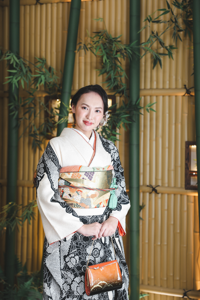 お支度後には、「アップにしていただいたヘアセットがとっても可愛くてキレイでした。メイクも綺麗に仕上げていただいて大満足です」と、笑顔でご感想をお聞かせくださいました。