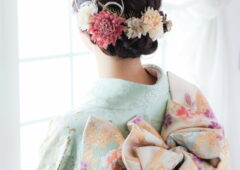 帯結びとヘアセットにフォーカスしてお撮りした成人お嬢様の素敵なポートレートです