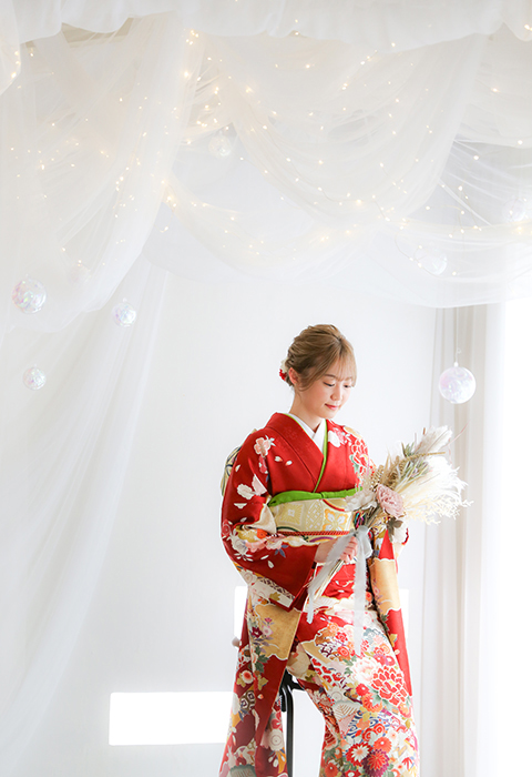 写真を美しく残すスタジオ設備や、美容・着付・撮影の専門スタッフが常駐しております。